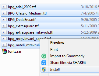 | • მონიშნეთ არქივიდან ყველა გამოტანილი ფაილი და კვლავ მაუსის მარჯვენა ღილით შეარჩიეთ ბრძანება 'Install'. | |||